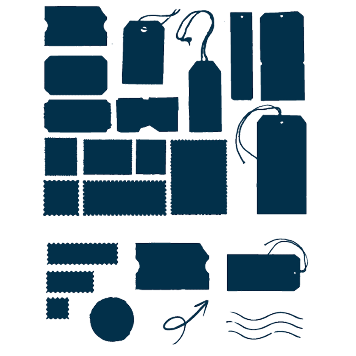 Kjernen i historiefortellingen er de grafiske elementene. Inspirert av reisesuvenirer som frimerker, billetter, bagasjelapper og stempler, fungerer disse som identitetens visuelle lim. De brukes som rammer, symboler og dekorative elementer på alt fra menyer til plakater.