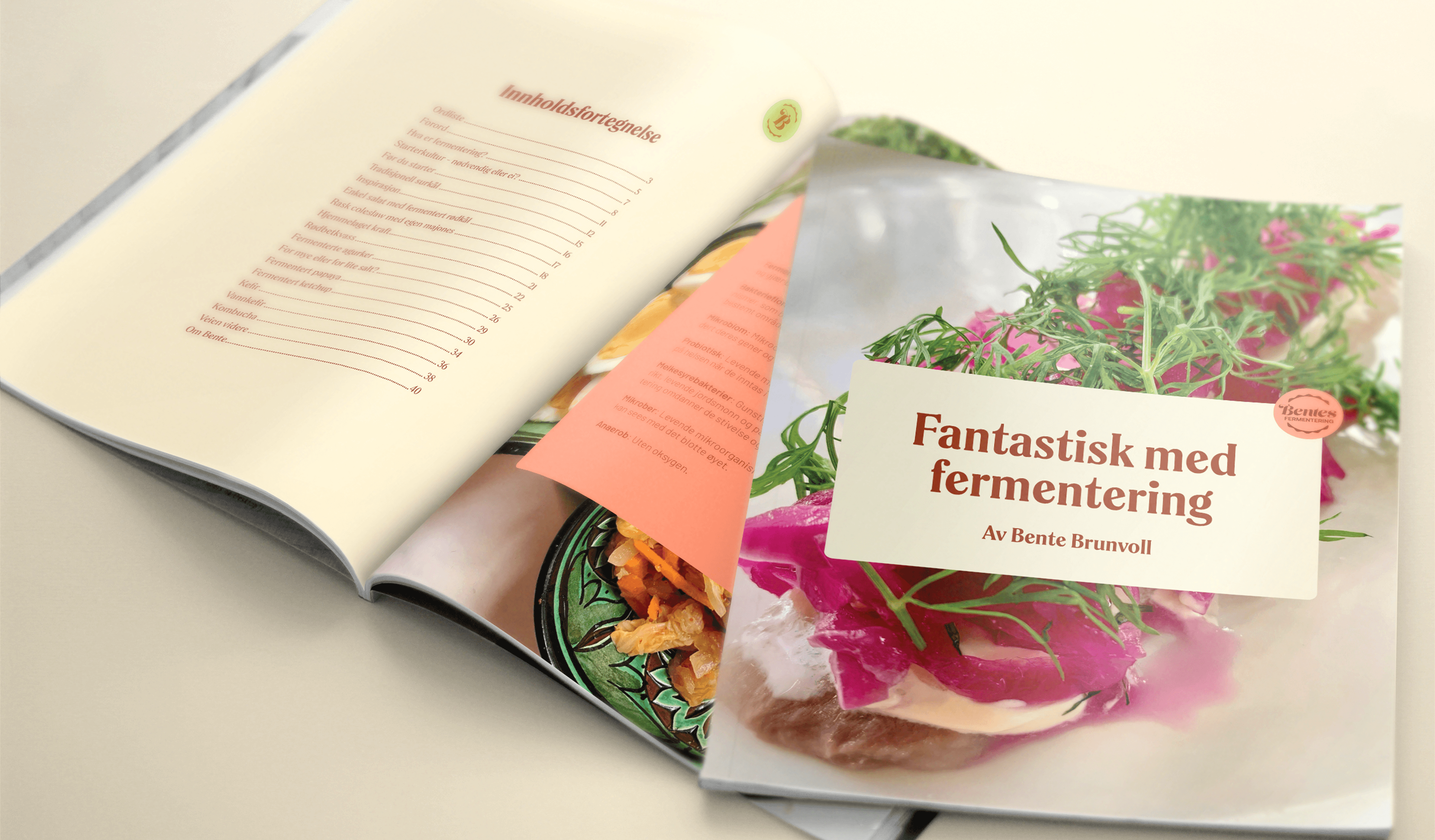 Bentes fermentering formidler gleden ved fermentert mat – og ønsket en merkevare som speilet den samme varmen, kunnskapen og livsgleden som Bente selv står for. Som lærling i Kult Byrå fikk jeg ansvar for å utvikle en helhetlig løsning med redesign av visuell identitet, oppgradert nettside i Squarespace og nytt oppskriftshefte med Sanity-integrasjon. Resultatet ble et friskere og mer tidsaktuelt uttrykk som gjør det enklere å inspirere flere til en sunnere livsstil.