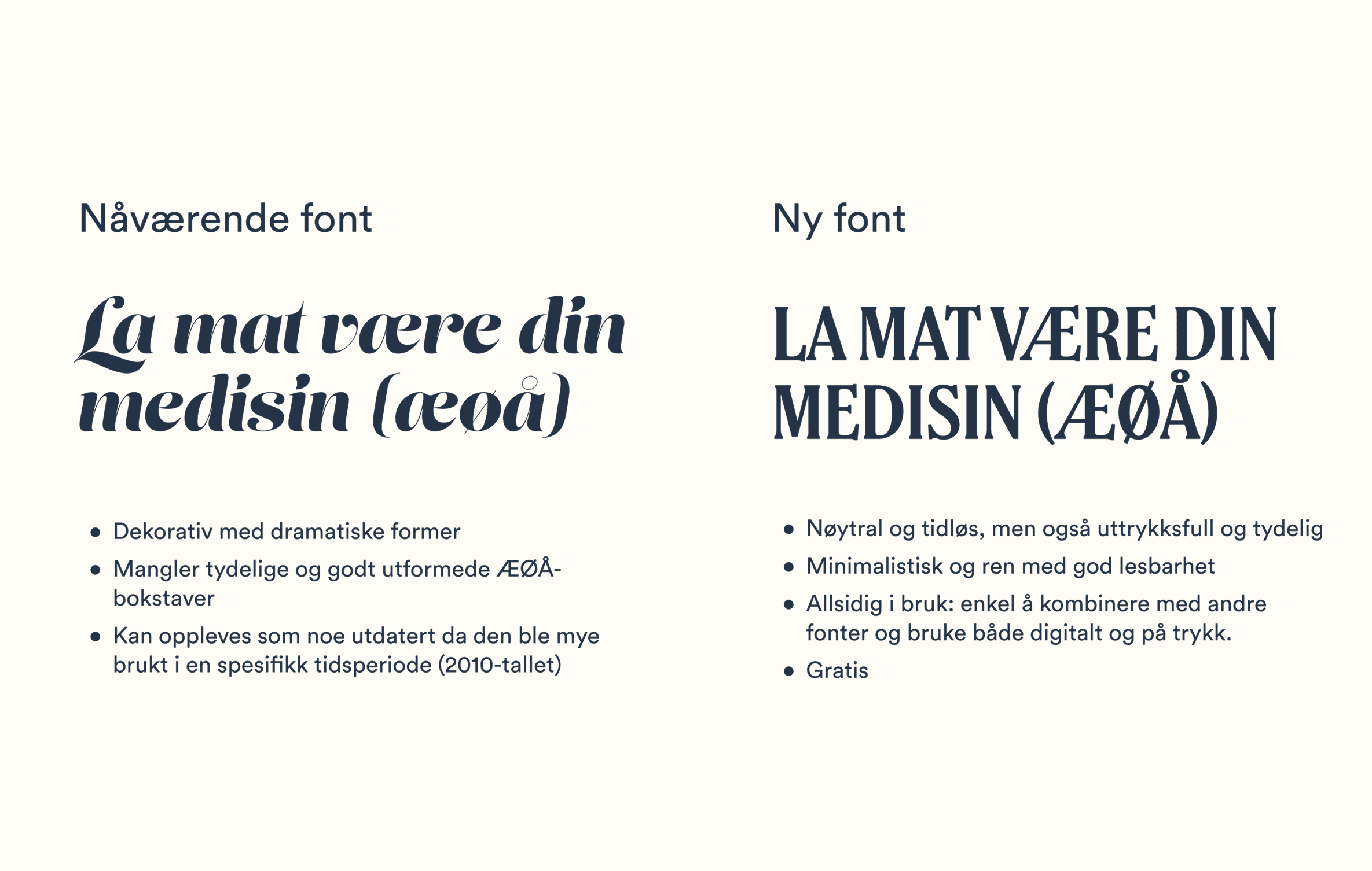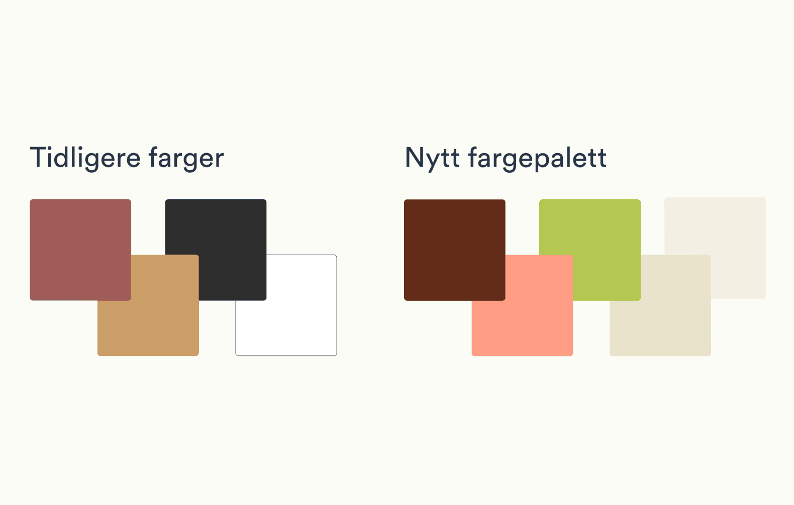 Logoen er forenklet for å bevare særpreget også i små formater, mens layouten organiseres i tydelige faktabokser som skaper struktur og ro – særlig i oppskriftsheftet. Fargepaletten henter inspirasjon fra fermenterte råvarer og tilfører energi og liv, mens typografien gir et moderne og lesbart uttrykk, med gode bokstavformer for Æ, Ø og Å.