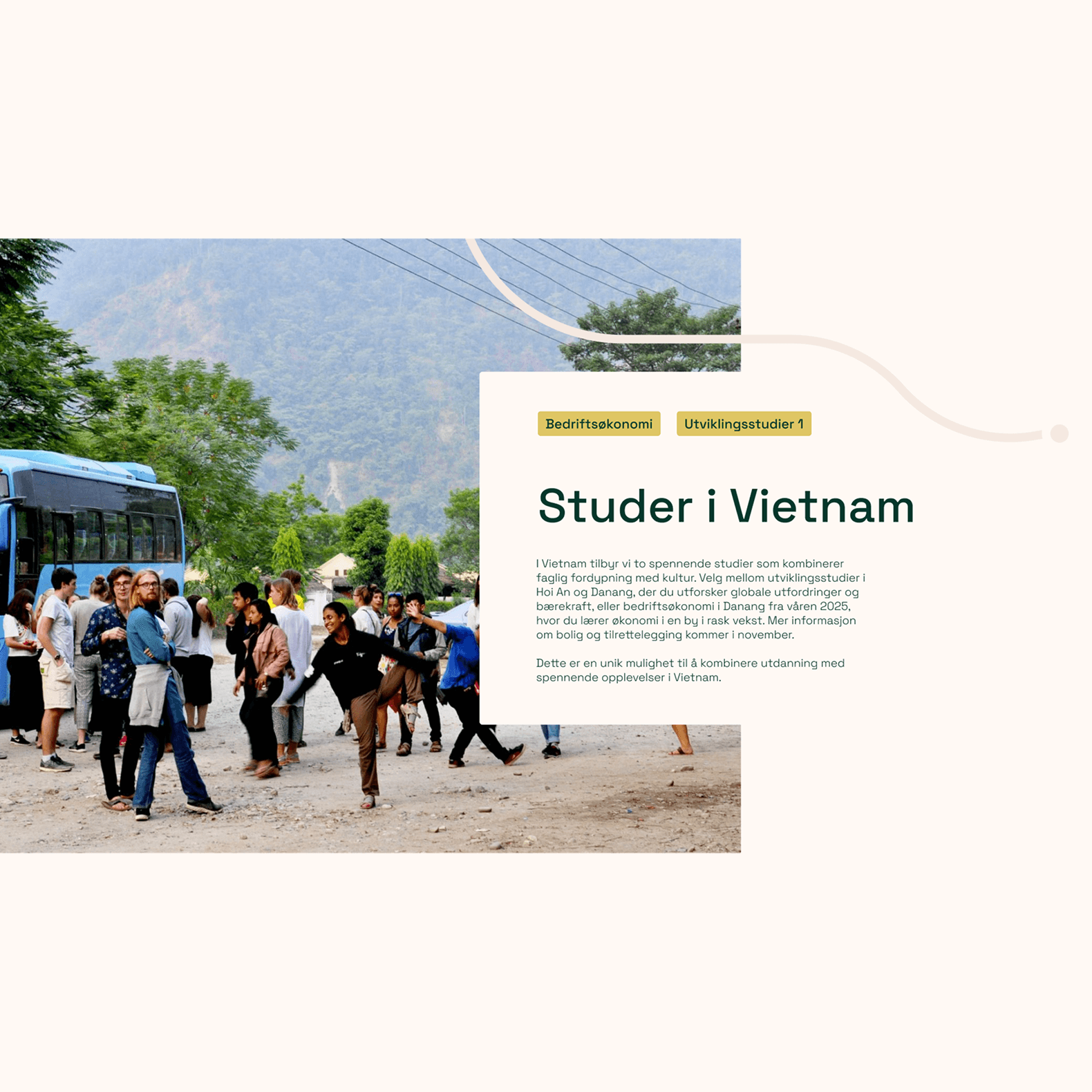 Oversiktlige moduler med fargede rammer organiserer innholdet og gjør viktig informasjon enkel å finne, noe som motvirker informasjonsoverbelastning. Moderne, ryddig typografi og helhetlig struktur understreker det akademiske og sikrer at Kulturstudier oppleves som en seriøs, tilgjengelig og relevant aktør for målgruppen.